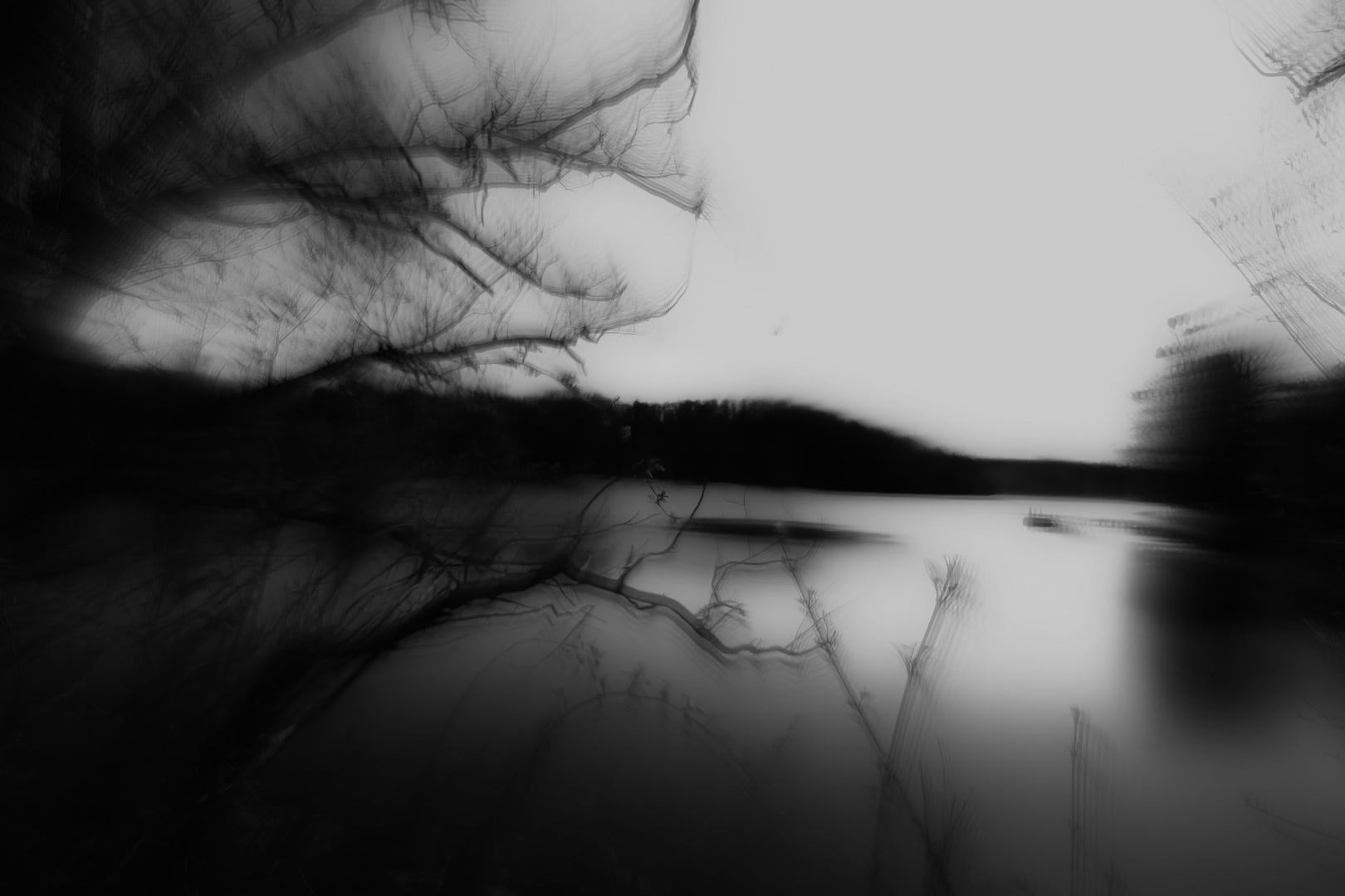 a misty scene pervades from the surrounding darkness. Is that the boatman yonder?